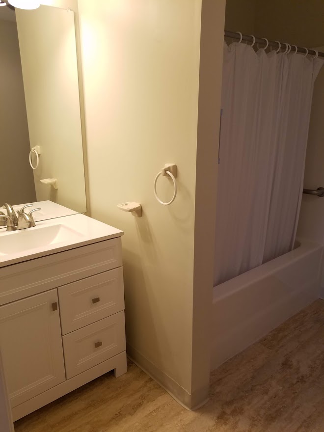 - Spacious bathroom with shower with safety bars